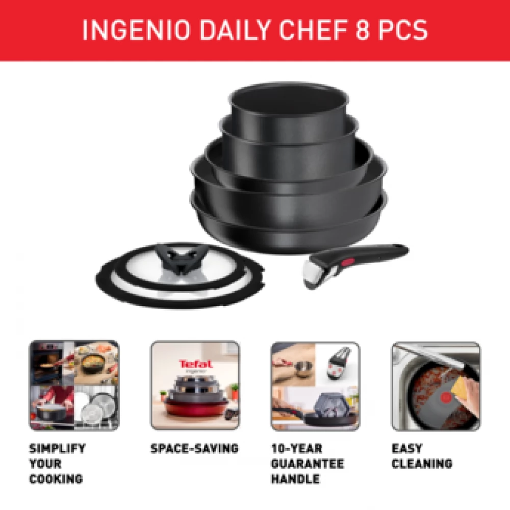 TEFAL L7629242 Ingenio Daily Chef Geschirr-Set 8 Party Schwarz