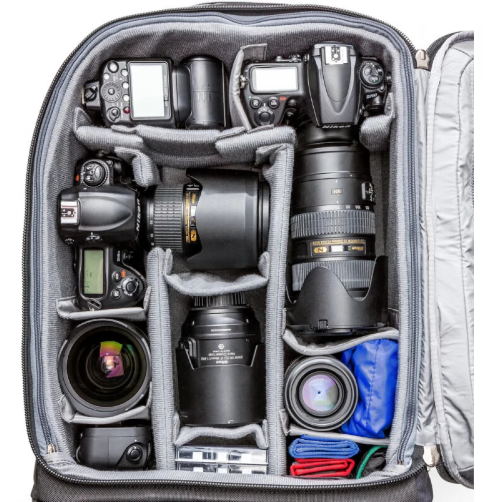 Rolltasche für den professionellen Einsatz durch Fotografen. Auf Reisen lässt sich damit die komplette Fotoausrüstung ordentlich und sicher transportieren.