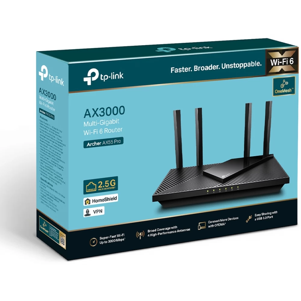 TP-LINK Archer AX55 Pro AX3000 Multi-Gigabit Wi-Fi 6 Router with 2.5G Port