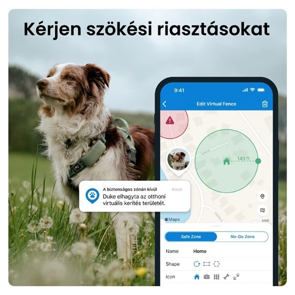 Stellen Sie einen virtuellen Zaun für Hunde-GPS mit der Tract Map IN-App ein. Sie erhalten einen Fluchtalarm, wenn Ihr Hund eine sichere Zone verlässt. Markieren Sie gefährliche Zonen, um zu wissen, wann Ihr Haustier an einen Ort geht, den Sie nicht sollten.