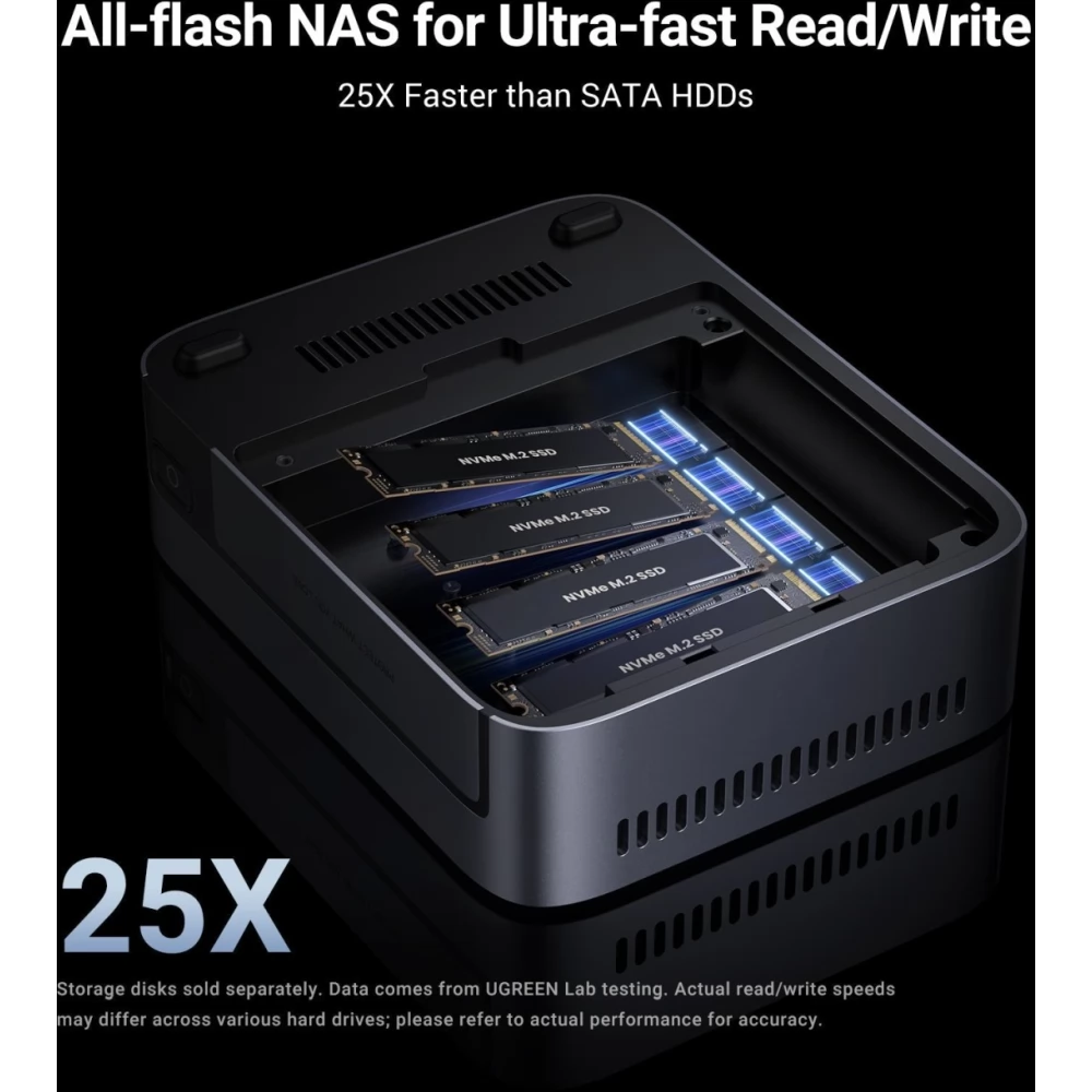 - bis zu 32 TB Kapazität: 4 × M.2 NVMe SSD -Sockel (max. 8 TB jeweils).