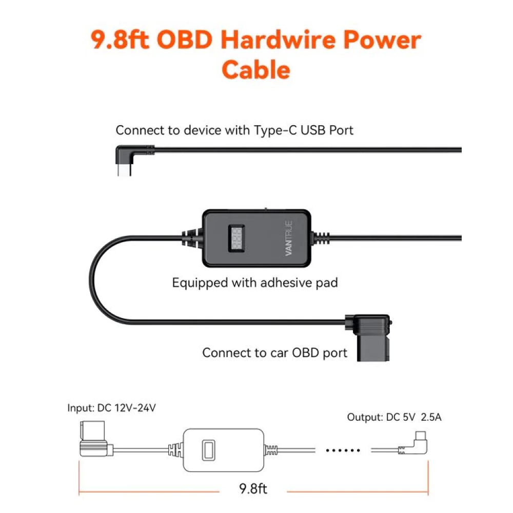 VANTRUE Dash Cam zusätzlich - OBD Kabel (parkolási módhoz)