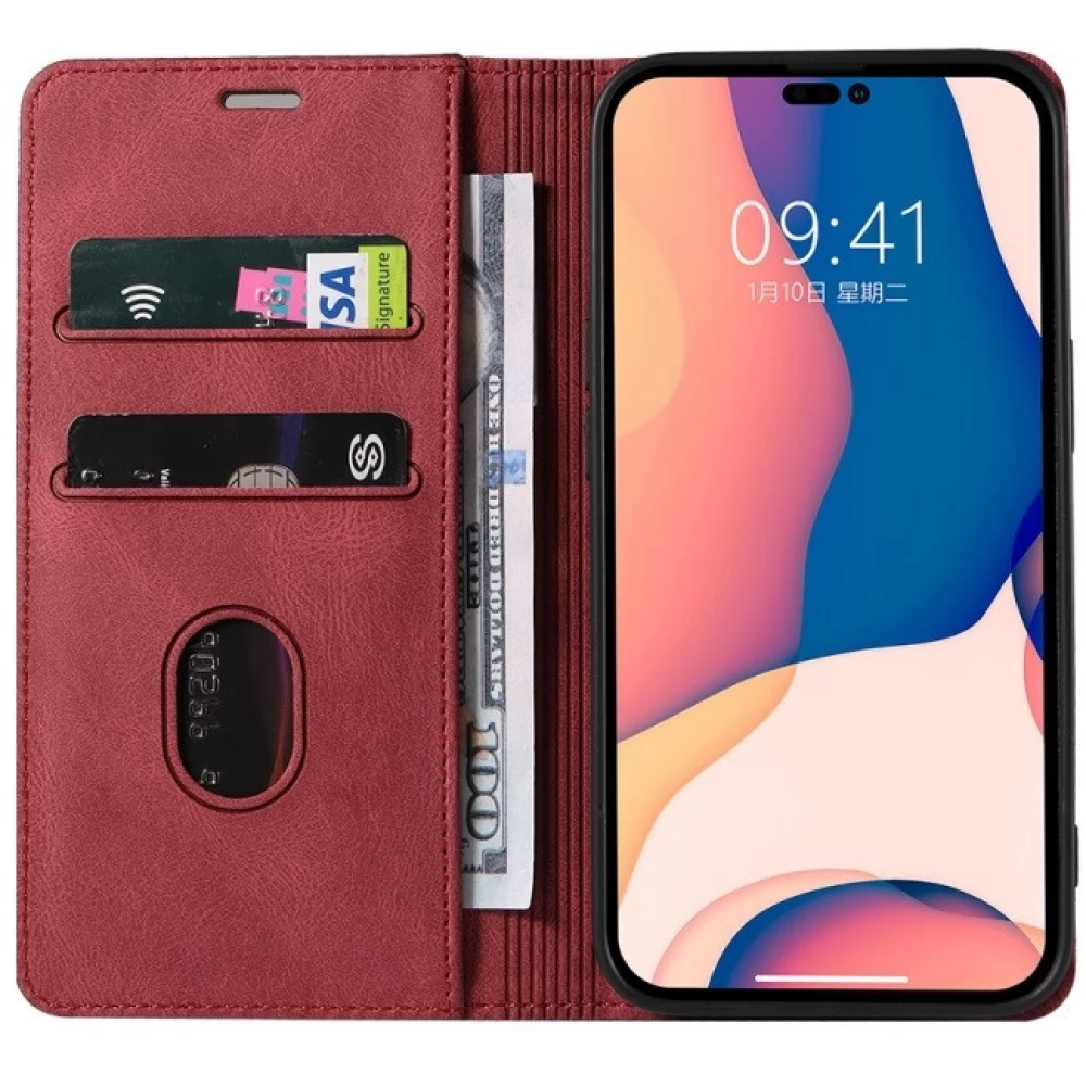 Diese Wooze-Hülle besteht aus hochwertigem PU-Weichleder und einer TPU-Innenseite mit Schreibtisch- und Kartenhalterfunktion.
