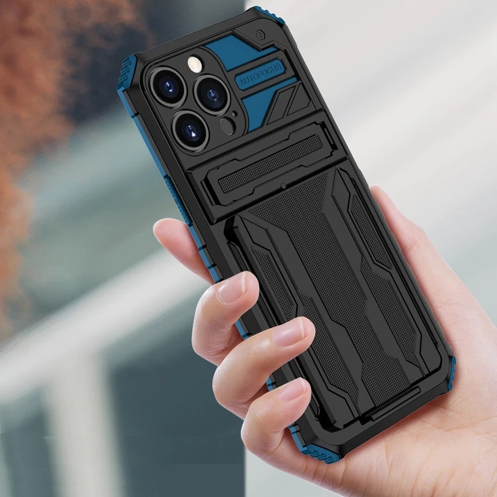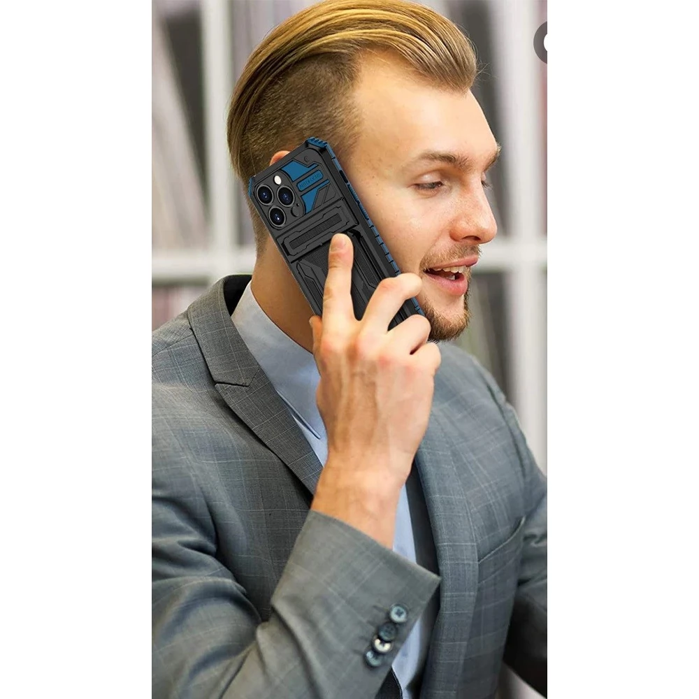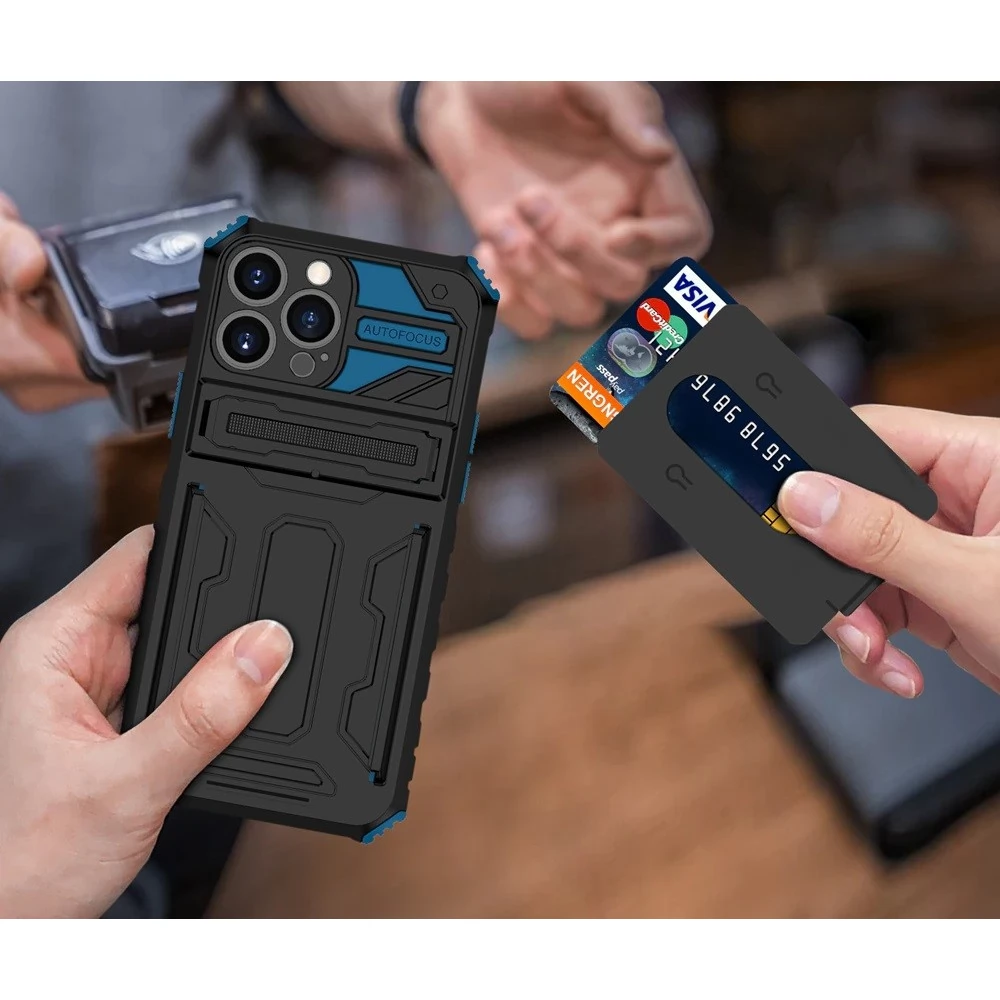 WOOZE Transformer Plastik Rückblatt Schutzhülle Silizium intern in Maßen stoßfest Ständer kártyatartóval Samsung Galaxy S23 Plus SM-S916 Schwarz Blau