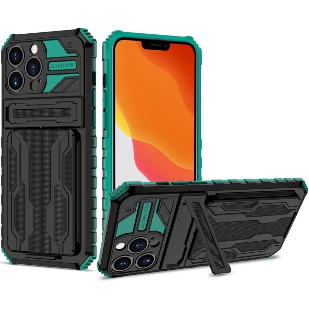 WOOZE Transformer Plastik Rückblatt Schutzhülle Silizium intern in Maßen stoßfest Ständer kártyatartóval Samsung Galaxy S23 Plus SM-S916 Schwarz Grün