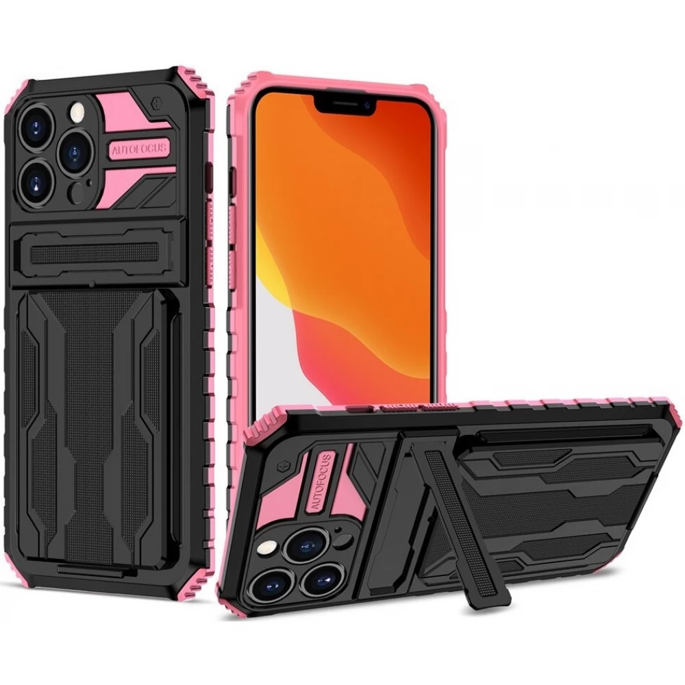 WOOZE Transformer Plastik Rückblatt Schutzhülle Silizium intern in Maßen stoßfest Ständer kártyatartóval Samsung Galaxy S23 Plus SM-S916 schwarz / pink